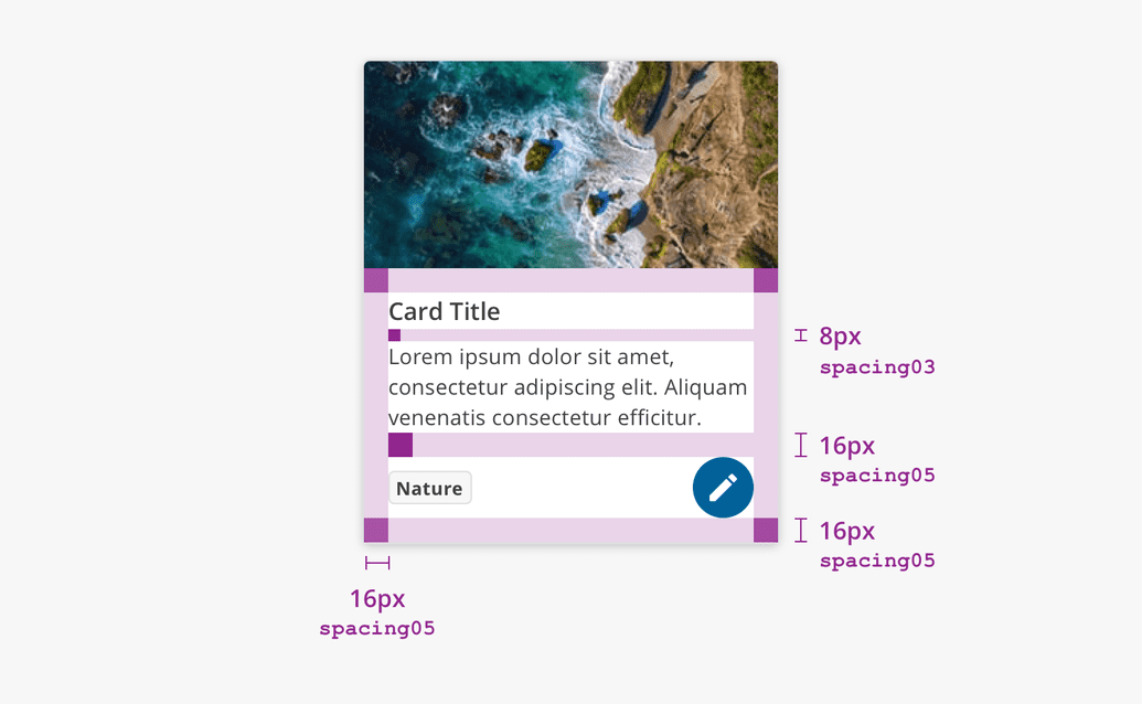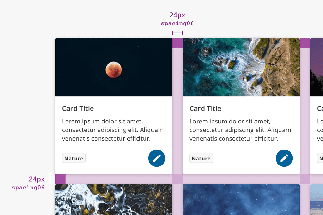 The React Magma spacing scale is based on the 8px grid system with some more granular increments at the smaller end of the scale for more fine-tuned spacing. Spacing can be applied using margin or padding.