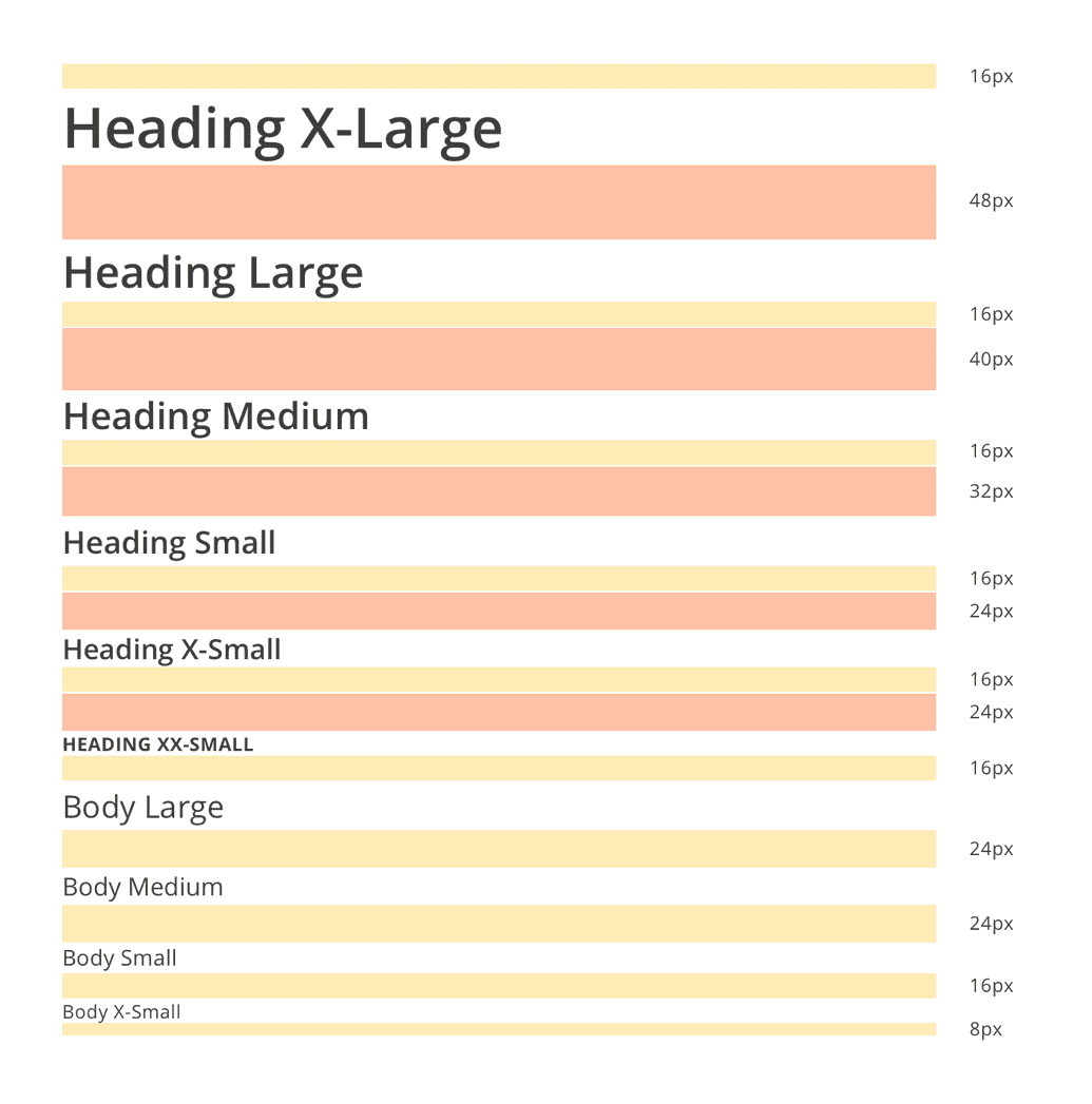 Line-heights are also defined at this level to adhere to an 8px spacing system, and should not be changed unless absolutely necessary