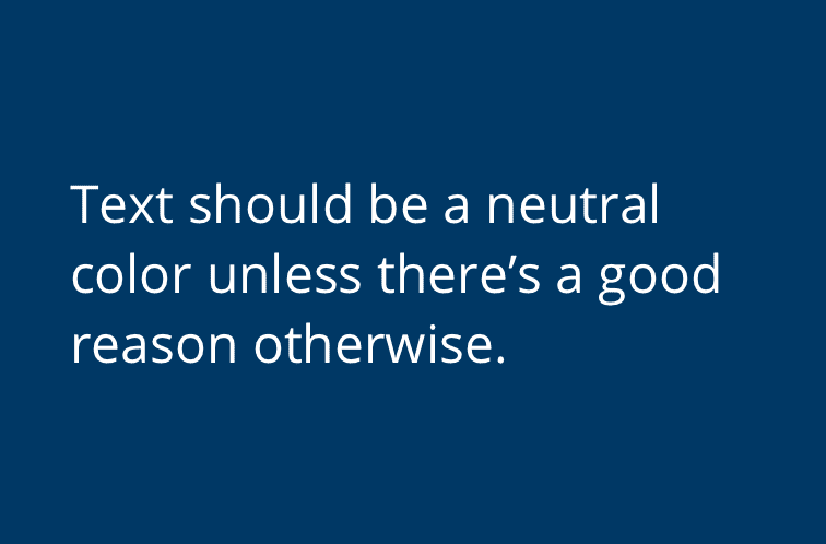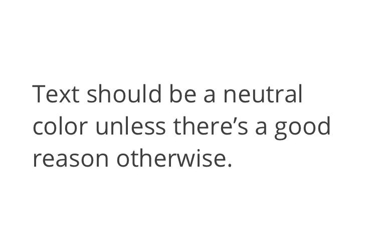 Text should generally be kept neutral in color until there's a reason to use a color.