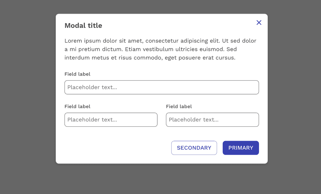 The default width of the medium modal is 600px. Works well for standard single-column forms.