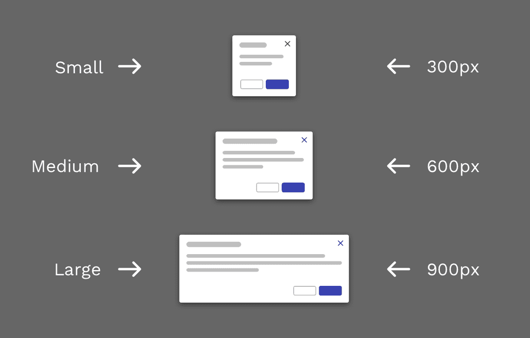 Modals come in three responsive sizes: small, medium, and large.
